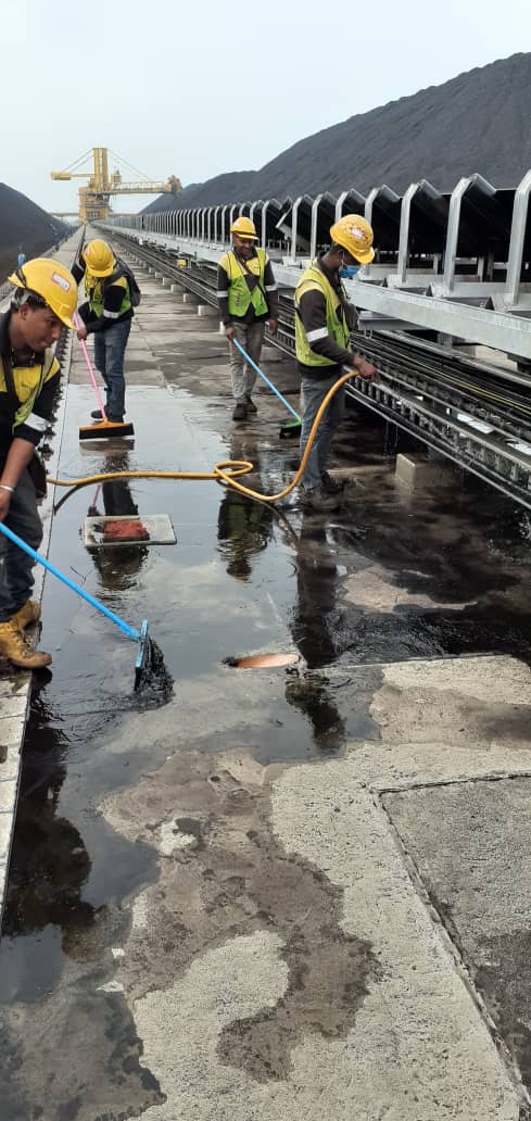 WET CLEANING AT STRUCTURE BELT CONVEYOR LINE
